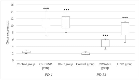 According to the hypothesis, the studies showed that the level of expression of PD-1 and PD-L1 is significantly higher in both patients with NHC and CRSwNP compared to controls. However, our study’s limitation is the small sample size; therefore, further investigation is needed. Elucidating the role of the PD-1/PD-L1 axis may, in the future, facilitate the implementation of effective treatments for immune-related diseases, such as CRS and HNC [79,80].