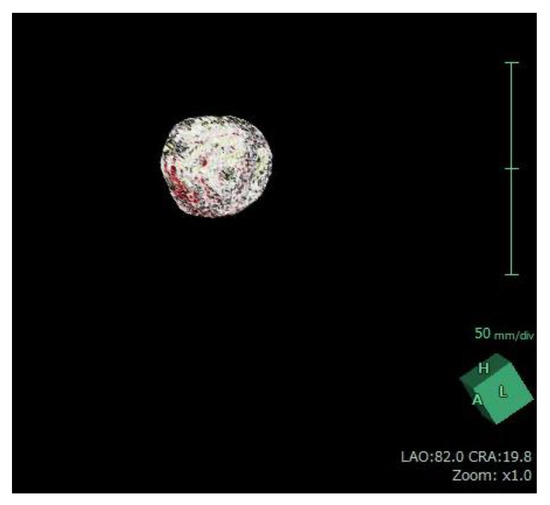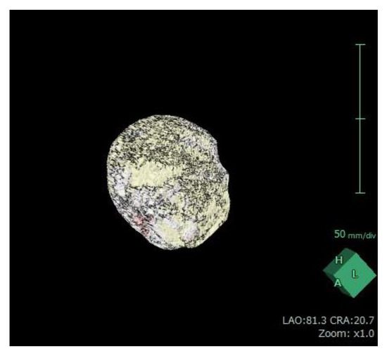 Three-dimensional reconstruction of the uterine fibroid 12 months after uterine artery embolization obtained using Synapse Vincent software.