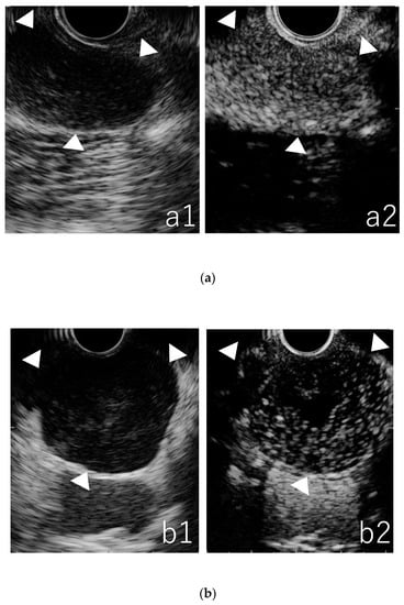- Miyata, T.; Kitano, M.; Omoto, S.; Kadosaka, K.; Kamata, K.; Imai, H.; Sakamoto, H.; Nisida, N.; Harwani, Y.; Murakami, T.; et al. Contrast-enhanced harmonic endoscopic ultrasonography for assessment of lymph node metastases in pancreatobiliary carcinoma. World J. Gastroenterol. 2016, 22, 3381–3391. [Google Scholar] [CrossRef]