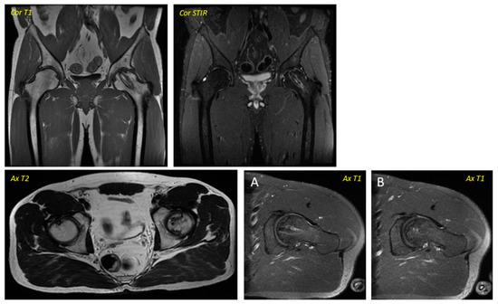 - Khanna, A.J.; Taek Rim Yoon Mont, M.A.; Hungerford, D.S.; Bluemke, D.A. Femoral head osteonecrosis: Detection and grading by using a rapid MR imaging protocol. Radiology 2000, 217, 188–192. [Google Scholar] [CrossRef]