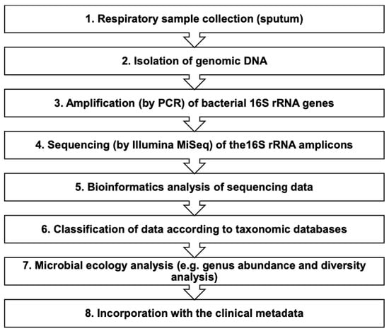 Flow diagram for the microbiome analysis of respiratory specimens (sputa). PCR: polymerase chain reaction; rRNA: ribosomal ribonucleic acid.