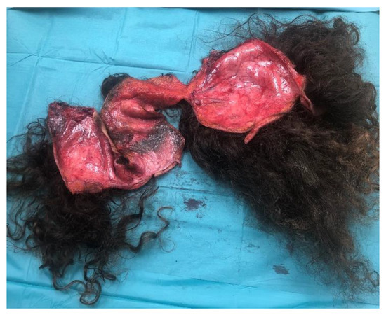 Taking into account the fact that the most common etiology of scalp avulsion is hair entrapment in mechanical devices for agriculture purposes [2], the microsurgical replantation of the scalp may not be possible due to patient comorbidity, the absence of vessels suitable for anastomosis, and the contamination of the anatomical piece by oily substances and small metal fragments from the machinery.