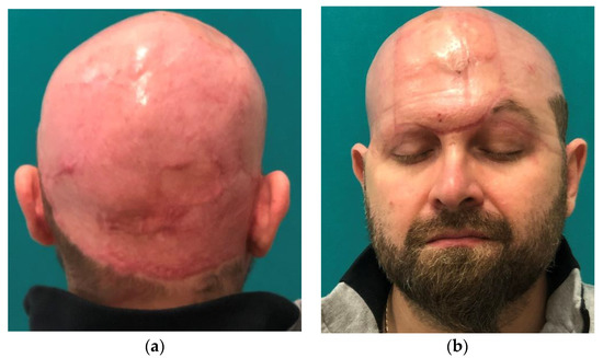 - Newman, M.I.; Hanasono, M.M.; Disa, J.J.; Cordeiro, P.G.; Mehrara, B.J. Scalp Reconstruction: A 15-Year Experience. Ann. Plast. Surg. 2004, 52, 501–506. [Google Scholar] [CrossRef] [PubMed]