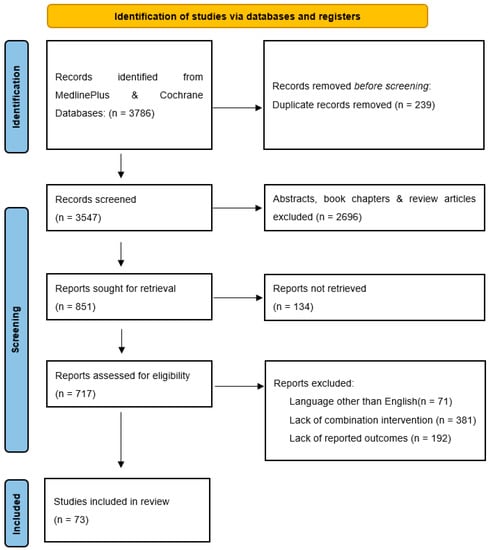 Flow diagram of literature search, article screening, full-text review, and exclusion criteria based on PRISMA reporting guidelines [].