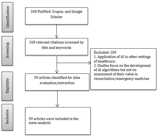While we performed a systematic literature search using several databases, nevertheless, some relevant articles might have been missed. Another limitation is that the scope of this review was focused on all applications of AI in the management of cardiac arrest; in some studies, it was impossible to eliminate the investigator’s bias in data collection and analysis. Some medications, such as beta-blockers, might influence the study results. The included studies focused on heterogeneous patient populations.