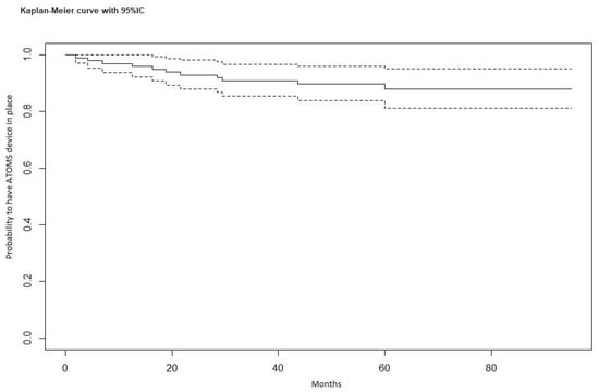 Survival of the device, Kaplan–Meier curve with 95% confidence interval.