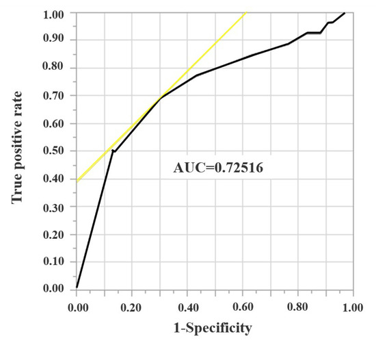 Local recurrence was observed in 26 tumors (17.8%). To determine the cutoff values for surgical margin width, ROC curve analysis was performed (Figure 1).