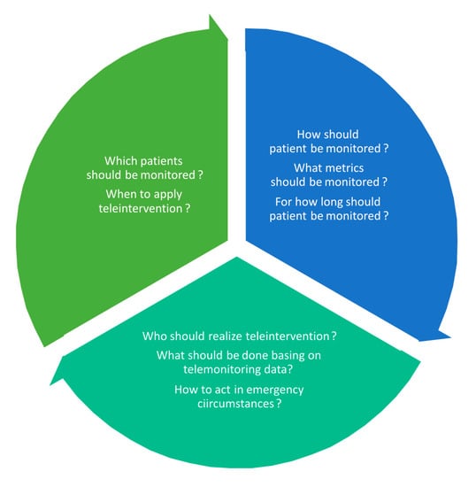 Future research should address still-existing dilemmas regarding the use of telemedicine solutions in HF patients who have recently been discharged from hospitals (Figure 1). The proper selection of candidates is important not only from a clinical perspective, but also in view of optimal resource management and costs. Not every patient would benefit from telemedicine—not only because of their variable technology literacy, but also due to some clinical features that may limit the potential benefits (e.g., advanced stage of disease, depression, poor prognosis, non-compliance). The time of teleintervention should be also adapted to the course of the disease. The remote support applied in the vulnerable phase does not have to be obligatorily extended to a lifelong process in all patients. The set of telemedicine modalities should also be individually selected. Not all patients need a full set of available telemonitoring devices. Similarly, the intensity and timeframe of remote control could be flexibly scheduled. The increasing application of algorithms, machine learning techniques, and artificial intelligence is also expected soon. The management of acquired data is crucial and, at the same time, challenging. The organisation of telemedicine centres demands precise assignment of personnel tasks, standard operating procedures, and clear instructions of how to act in emergency circumstances.