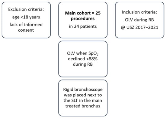 All consecutive patients receiving OLV during RB at the University Hospital Zurich were enrolled in this descriptive, retrospective study from 1 January 2017 to 12 May 2021. Exclusion criteria were as follows: age < 18 years and lack of informed consent. All patient-related data, including demographic and clinical data, were obtained from electronic patient record files. These data included bronchoscopy reports, radiological and medical data, anesthesia protocols, and follow-up interviews. Cancer stage was classified according to the eighth edition of the American Joint Commission on Cancer (AJCC) TNM staging system for non-small cell lung cancer [17]. The study was approved by the Competent Ethics Committee of the Canton of Zurich (ID 2021-01380).