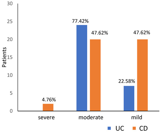 APA StyleWoźniak, M., Borkowska, A., Jastrzębska, M., Sochal, M., Małecka-Wojciesko, E., & Talar-Wojnarowska, R. (2023). Clinical and Laboratory Characteristics of Anaemia in Hospitalized Patients with Inflammatory Bowel Disease. Journal of Clinical Medicine, 12(7), 2447. https://doi.org/10.3390/jcm12072447