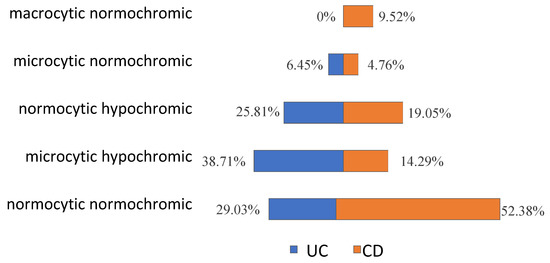 Chicago/Turabian StyleWoźniak, Małgorzata, Anna Borkowska, Marta Jastrzębska, Marcin Sochal, Ewa Małecka-Wojciesko, and Renata Talar-Wojnarowska. 2023. "Clinical and Laboratory Characteristics of Anaemia in Hospitalized Patients with Inflammatory Bowel Disease" Journal of Clinical Medicine 12, no. 7: 2447. https://doi.org/10.3390/jcm12072447
