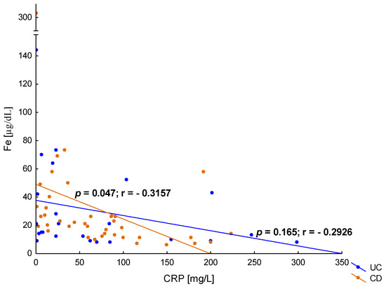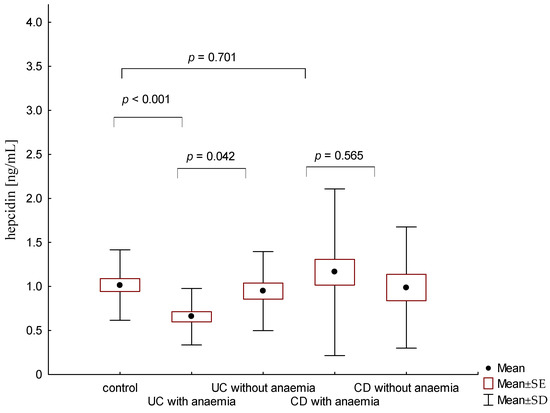 - Krawiec, P.; Mroczkowska-Juchkiewicz, A.; Pac-Kożuchowska, E. Serum hepcidin in children with inflammatory bowel disease. Inflamm. Bowel Dis. 2017, 23, 2165–2171. [Google Scholar] [CrossRef]