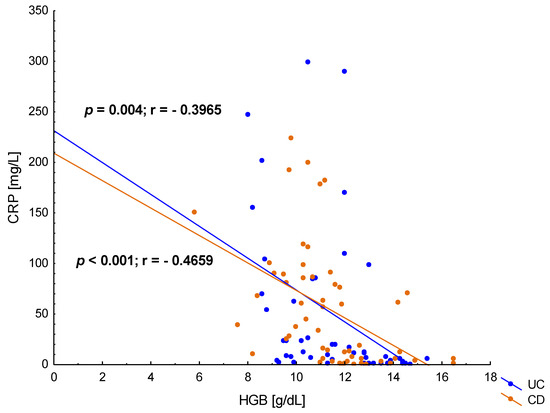 - Woźniak, M.; Barańska, M.; Małecka-Panas, E.; Talar-Wojnarowska, R. The prevalence, characteristics, and determinants of anaemia in newly diagnosed patients with inflammatory bowel disease. Gastroenterol. Rev. 2019, 14, 39–47. [Google Scholar] [CrossRef]