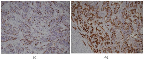 - Acosta, A.M.; Pins, M.R. Hepatoid Carcinoma of the Ovary: Clinical, Histopathologic, and Immunophenotypic Features. Arch. Pathol. Lab. Med. 2019, 143, 883–889. [Google Scholar] [CrossRef]