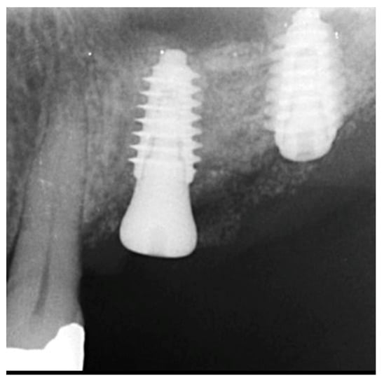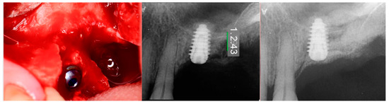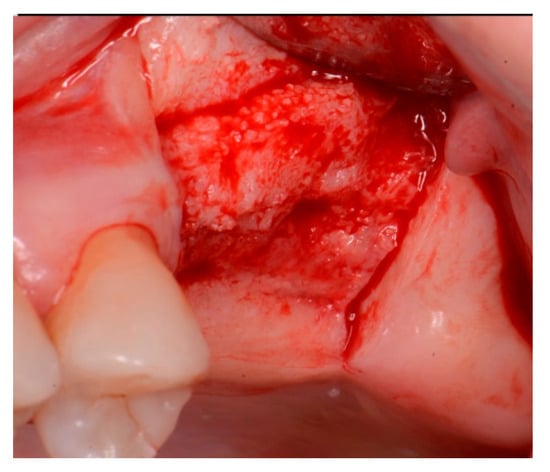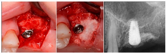 - Fairbairn, P. Bone Augmentation using Alloplastic Particulate Graft Material with Simultaneous early Implant placement: A case report. J. Parodontol. Implantol. Orale 2016, 35, 291–298. [Google Scholar]