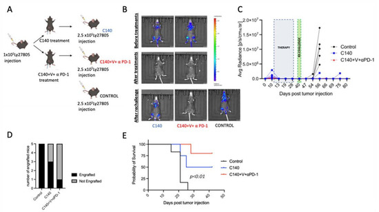 In our previous work [4,5], we demonstrated that TT, including C140, V, and anti-PD-1, eradicates tumor growth in two murine models of TNBC. We investigated whether the same TT combinatorial therapy can also be effective against a highly aggressive murine lymphoma model. To achieve this aim, we took advantage of a previous Myc-driven B-cell non-Hodgkin’s lymphoma cell line characterized by Bruno Amati’s laboratory [7].