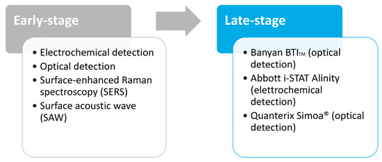 The devices are categorized based on their current stage of development: early-stage devices used in academia and late-stage devices commercially available (see Figure 3).