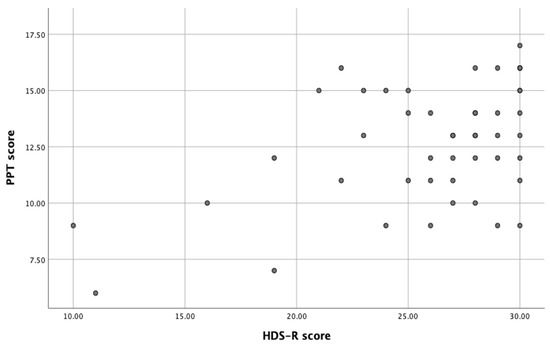 Correlation between HDS-R score and PPT score.