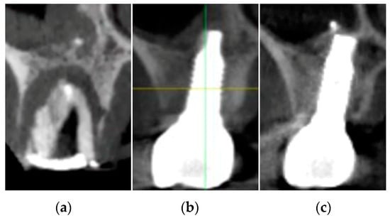 - Menchini-Fabris, G.-B.; Covani, U.; Crespi, G.; Toti, P.; Brevi, B.; Crespi, R. Customized vs Conventional Implant-Supported Immediate Provisional Crowns for Fresh-Socket Implant: A Medium-Term Cone Beam Computed Tomography Study. Int. J. Oral Maxillofac. Implant. 2019, 34, 1505–1511. [Google Scholar] [CrossRef] [PubMed]