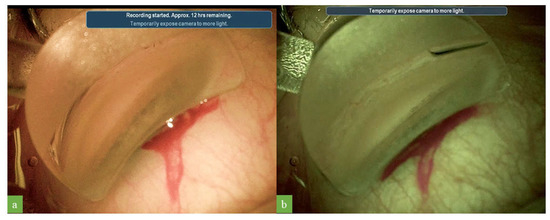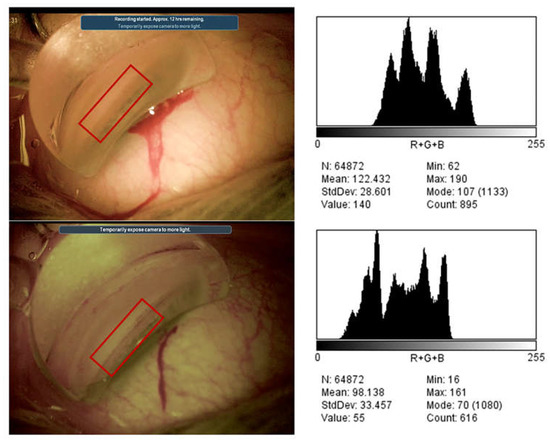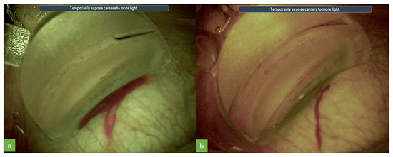 Increasing the color temperature adds a warm tone to an image, making the colors in the image appear warmer. As demonstrated in this study, by increasing temperature colors in the images, Schlemm’s canal, which is barely visible with standard colors, becomes reddish in appearance and, therefore, easier to identify. Blood flowing within Schlemm’s canal is sometimes visible as a red line with standard colors. However, the use of a higher color temperature for imaging renders the color of the blood warmer and more reddish, making it easier to detect. The enhanced visualization of Schlemm’s canal may increase the accuracy and safety of stent implantation via MIGS, which may potentially improve postoperative results.