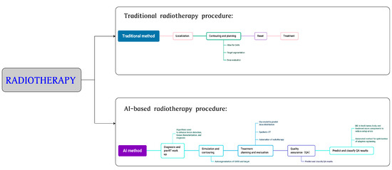 Comparison of radiotherapy procedures between traditional and AI-based radiation methods.