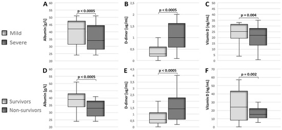 4.1. Decreased Levels of Vitamin D and Albumin, in Combination with Elevated Levels of D-Dimer, Indicate a More Severe Clinical Picture and a Fatal Outcome for Patients with COVID-19