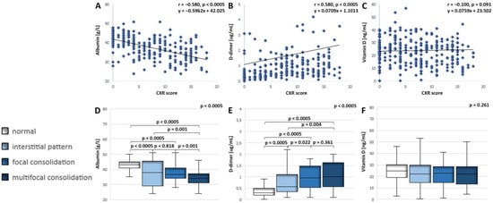 | Variables | Albumin (g/L) | D-dimer (ug/mL) | Vitamin D (ng/mL) | ||||||
