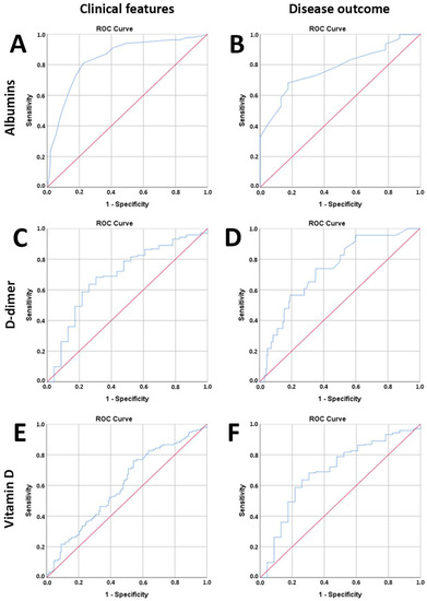 4.2. Serum Concentrations of Vitamin D, D-Dimer, and Albumin Are Significant Prognostic Factors for the Severity of the Clinical Picture and the Outcome of the Disease