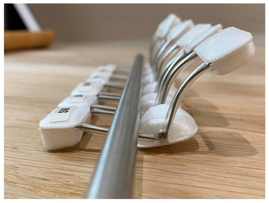 In this study, we confirmed that the straight tube ETDNO generates a mean force of 208 g when applied to a 30° PIPJ flexion contracture. This force is too near Brand’s therapeutic range limit for an orthosis that a person wears for more than 8 h. While lower than the 250 g (2.45 N) that other authors used [9,10,18], these forces still translated into pressure gradients of 32.43 mmHg. These came very close to the 33 mmHg amount for orthosis wear longer than eight hours that Brand suggested as an upper pressure limit. By discovering that this value was a mean, we became aware that pressure can have higher peaks in some areas along the dorsal aspect of the PIPJ (Figure 12). The results of these studies support our agreement with Brand and Bell–Krotoski that therapists should maintain PIPJ orthoses forces at a therapeutic range below 200 g (1.96 N) [14,15].