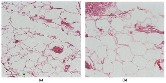 Adipose tissue: a control group ((a) non-obese patient); (b) Obese patient (H&E staining).