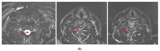- Al-Habib, A.F.; Al Abdulsalam, H.; Ahmed, J.; Albadr, F.; Alhothali, W.; Alzahrani, A.; Abojamea, A.; Altowim, A.; Ullah, A.; Alkubeyyer, M. Association between craniovertebral junction abnormalities and syringomyelia in patients with chiari malformation type-1. Neurosciences 2020, 25, 308–315. [Google Scholar] [CrossRef] [PubMed]