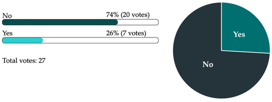 At the 36th Swiss Congress of Oral and Cranio-maxillofacial Surgery, we received 27 answers from the participants. Twenty-six percent knew there were dental and maxillofacial “medStandards” and 74% did not know about the availability of these algorithms (Figure 4).