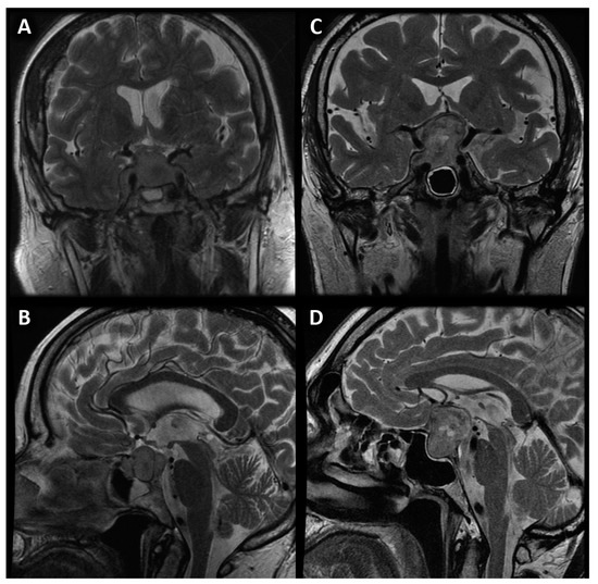 - Bonneville, J.-F. Magnetic Resonance Imaging of Pituitary Tumors. Imaging Endocr. Disord. 2016, 45, 97–120. [Google Scholar] [CrossRef]