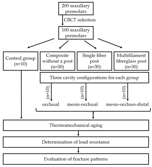 - Fráter, M.; Forster, A.; Jantyik, Á.; Braunitzer, G.; Nagy, K.; Grandini, S. In vitro fracture resistance of premolar teeth restored with fibre-reinforced composite posts using a single or a multi-post technique. Aust. Endod. J. 2017, 43, 16–22. [Google Scholar] [CrossRef]