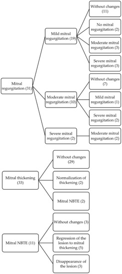 - Pardos-Gea, J.; Ordi-Ros, J.; Avegliano, G.; Cortés-Hernández, J.; Balada, E.; Evangelista, A.; Vilardell, M. Echocardiography at diagnosis of antiphospholipid syndrome provides prognostic information on valvular disease evolution and identifies two subtypes of patients. Lupus 2010, 19, 575–582. [Google Scholar] [CrossRef]
