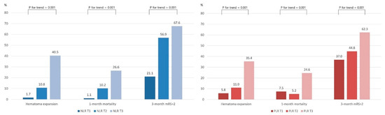 Kim, Y.; Sohn, J.-H.; Kim, C.; Park, S.Y.; Lee, S.-H. The Clinical Value of Neutrophil-to-Lymphocyte Ratio and Platelet-to-Lymphocyte Ratio for Predicting Hematoma Expansion and Poor Outcomes in Patients with Acute Intracerebral Hemorrhage. J. Clin. Med. 2023, 12, 3004. https://doi.org/10.3390/jcm12083004