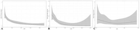 The trend of odds ratio of outcomes according to LDH level. (A) Primary outcome (ROSC); (B) Secondary outcome (Survival discharge); and (C) Tertiary outcome (Favorable neurologic outcome).