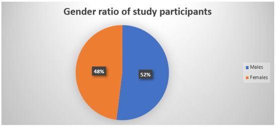 Pie chart representing the gender ratio of subjects enrolled in this study.
