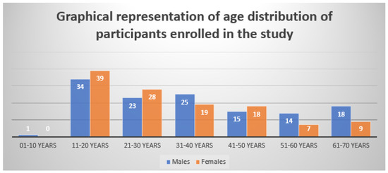 Graphical representation showing the age distribution of participants enrolled in this study according to the details mentioned in Table 2.