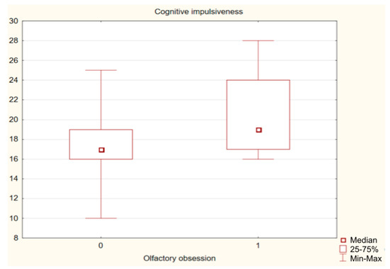 Difference in severity of cognitive impulsivity between OCD patients with and without olfactory obsessions.
