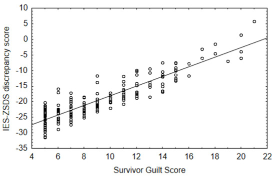Effect of survivor guilt in predicting IES-ZSDS discrepancy score.