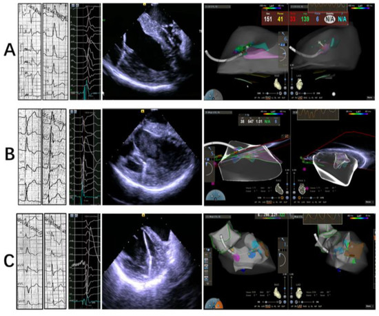 - Proietti, R.; Rivera, S.; Dussault, C.; Essebag, V.; Bernier, M.L.; Ayala-Paredes, F.; Badra-Verdu, M.; Roux, J.F. Intracardiac echo-facilitated 3D electroanatomical mapping of ventricular arrhythmias from the papillary muscles: Assessing the ‘fourth dimension’ during ablation. Europace 2017, 19, 21–28. [Google Scholar] [CrossRef] [PubMed]
