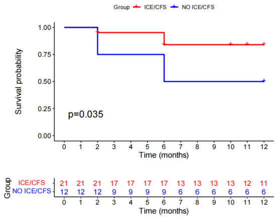 | Variables | ICE/CFS Group (n = 21) | No ICE/CFS Group (n = 12) | p Value |