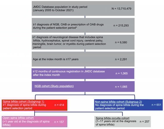 Kitta, T.; Mitsui, T.; Izumi, N. Diagnosis and Treatment of Japanese Children with Neurogenic Bladder: Analysis of Data from a National Health Insurance Database. J. Clin. Med. 2023, 12, 3191. https://doi.org/10.3390/jcm12093191