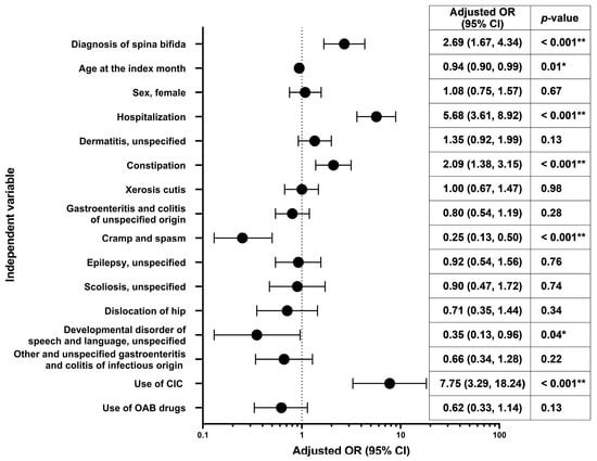 - Jiang, M.; Deng, J.; Zhou, G.; Li, S.; Liu, G. Risk factors for recurrent urinary tract infection in children with neurogenic bladder following clean intermittent catheterization. Urology 2022, 164, 224–229. [Google Scholar] [CrossRef] [PubMed]