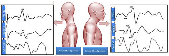 As standard practice, clinicians with 10 years of experience assessed all participants. Exclusion criteria for the current investigation were as follows: (i) any inflammatory joint disease; (ii) any systemic pathology; (iii) a history of significant injury or primary musculo-skeletal surgical interventions; (iv) deformity of the spine or extremities; and (v) any pain in the past 3-months involving the musculo-skeletal system. All participants were required to be pain-free. This was done in order to assess the potential effects of abnormal head posture without the presence of acute pain, as the presence of pain alone is known to induce a significant reduction in the post-central N20–P25 complex and a significant increase in the N18 wave [24].