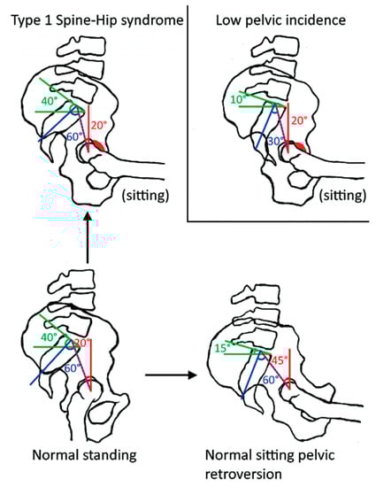 - Lazennec, J.Y.; Brusson, A.; Rousseau, M.A. Lumbar-pelvic-femoral balance on sitting and standing lateral radiographs. Orthop. Traumatol. Surg. Res. 2013, 99 (Suppl. S1), S87–S103. [Google Scholar] [CrossRef]