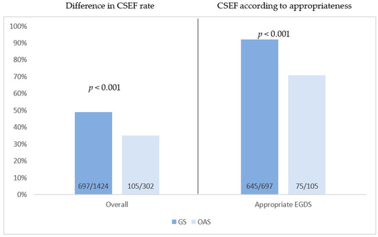 Difference in CSEF rate according to group (GAS vs. OAS) and appropriateness of EGDS.