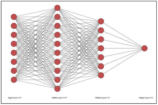 An AI system was developed with the aim of optimizing the current dosimetry protocol at our institution by limiting the number of patient visits for imaging to 4 h, 24 h, and 48 h only and eliminating the 72 h and 96 h. This is accomplished by using the imaging counts and blood sample measurements at 4 h, 24 h, and 48 h to predict the MPA as it would be obtained from the full set of measurements, including the 72 h and 96 h time points. Furthermore, we aim to use AI to explore possible inherent relationships between the different types of input data, such as camera counts and blood sample measurements, that were previously unknown. We employed a Python Keras neural network to perform the prediction of MPA. The network architecture consists of an input layer, two hidden layers with 10 and 7 nodes, respectively, and an output layer representing the calculated MPA (Figure 1). The input layer accepts eight features as inputs, including normalized anterior/posterior counts; corresponding blood sample counts at 4 h, 24 h, and 48 h; age; and patient weight. The first hidden layer consists of 10 nodes, and the second hidden layer consists of seven nodes. These layers are designed to capture complex relationships and patterns in the data. The activation function used for the hidden layers is ‘relu’ (Rectified Linear Unit), which introduces non-linearity and helps the network learn complex mappings between inputs and outputs. The output layer contains a single node representing the predicted MPA value. To train the neural network, we used the ‘adam’ optimizer and the ‘mean_squared_error’ loss function. The ‘adam’ optimizer is an extension of stochastic gradient descent that adapts the learning rate dynamically and has been shown to converge quickly and perform well on a wide range of problems. The ‘mean_squared_error’ loss function calculates the mean squared difference between the predicted and actual values, which is suitable for regression tasks. The training process involved iteratively updating the network weights based on the optimization algorithm. We used a training data set of 70 patients to train the model with consideration of a wide range of MIRD-calculated MPA values, from lower to higher amounts, to ensure the model is exposed to as many associations of the data parameters as possible. During training, the network learned to minimize the loss function by adjusting the weights to minimize the prediction error. To prevent overfitting, early stopping is implemented as a callback in the model. The training process is monitored for the validation loss, and if there is no improvement in the loss for 50 consecutive epochs, the training is stopped, and the model is restored to the weights that achieved the best validation loss. After training, we evaluated the performance of the trained neural network using a testing data set of 13 patients that was previously unused and unknown to the model. We computed the predictions for the test instances and compared them with the corresponding ground truth MIRD-based values. Statistical analysis was performed using Microsoft Excel to quantitate the accuracy of the values obtained using the AI system in comparison to the ones using MIRD with two tests: (a) a paired t-test at the 95% confidence interval (CI) and a Wilcoxon Signed-Rank test.