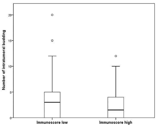 3.3. The Correlation between Intratumoral Budding and Tumor-Infiltrating Lymphocytes